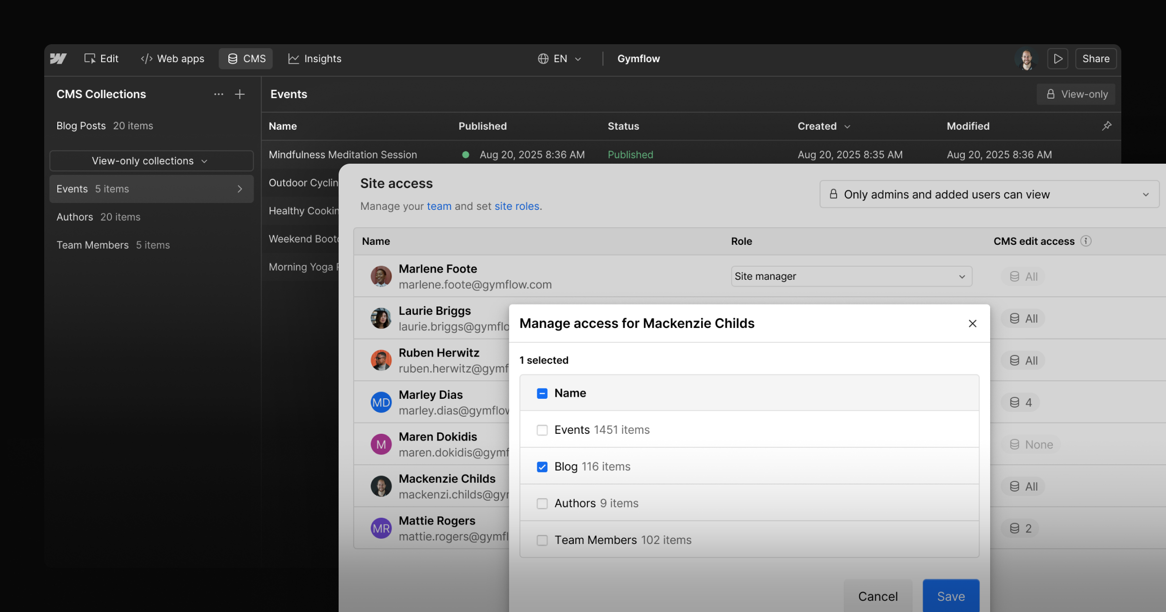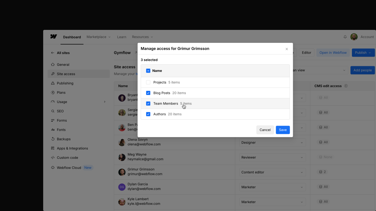 Webflow delivers with multiple layers of granular authorization controls: