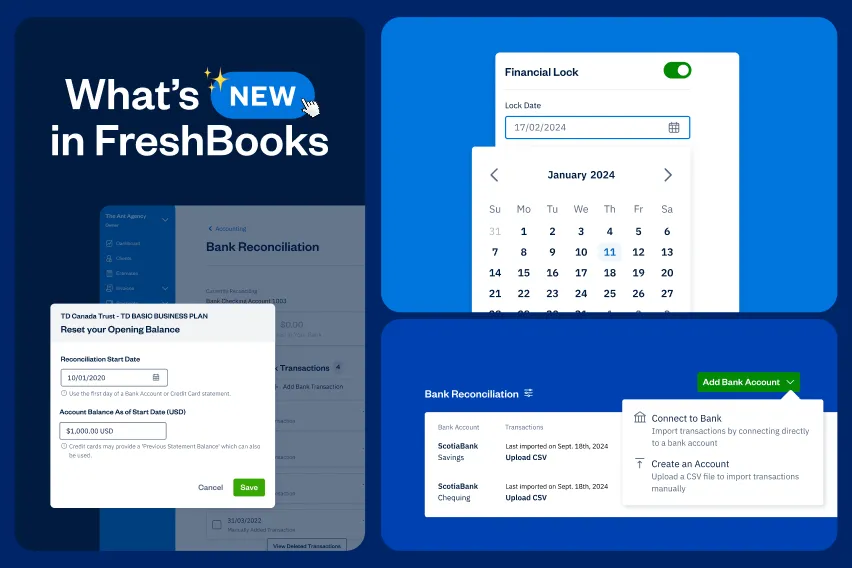 Speaking of reconciliation, direct bank connections previously limited owners to importing their most recent 90 days of transactions into FreshBooks. Now, you can set a client’s bank reconciliation start date to any date you want—even before the earliest their imported bank transactions—and manually import historical data via CSV.